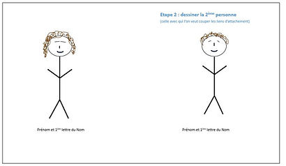 2) Dessiner une 2ème personne à côté : notre partenaire, un de nos parents, notre enfant, un collègue de travail, un ami, un supérieur hiérarchique, une personne avec laquelle nous éprouvons de la frustration, des attentes, de la colère, etc.
